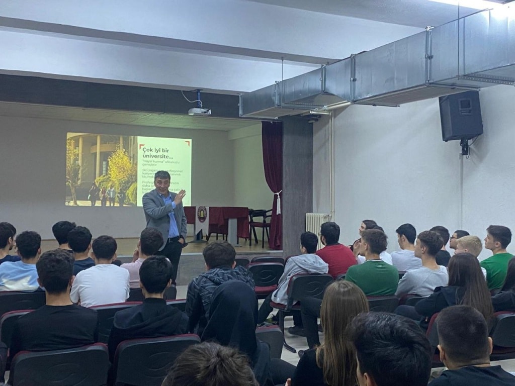 24 Nisan 2025 tarihinde, Bilkent Üniversitesi Rektör Danışmanı ve İşletme Fakültesi öğretim üyesi Dr. Örsan Örge, okulumuzu ziyaret ederek 12. sınıf öğrencilerimize “Doğru Üniversite Seçimi” konulu değerli bir konferans verdi. Öğrencilerimiz, üniversite ve kariyer planlamasına dair merak ettikleri soruları sorma fırsatı buldu.